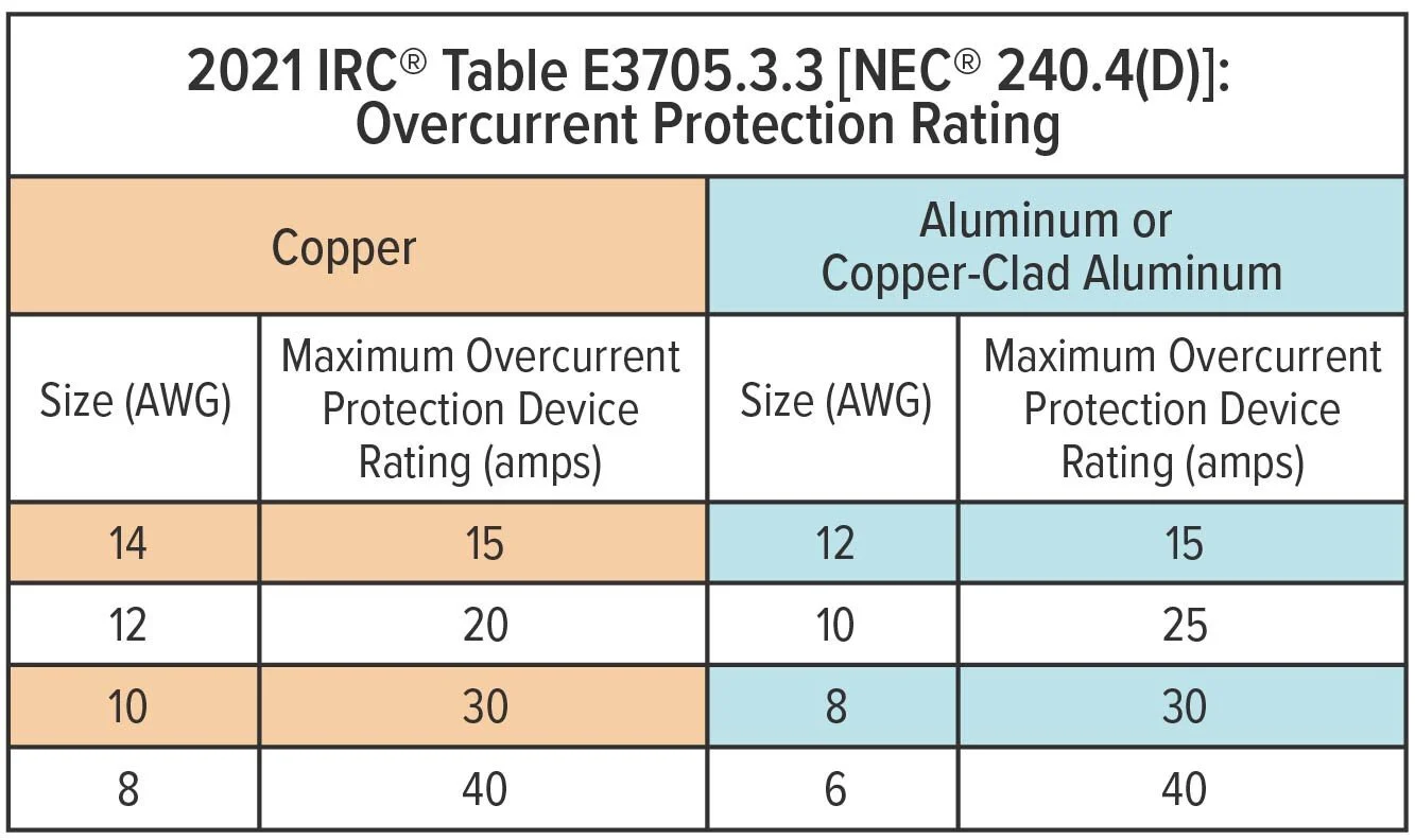 This table lists the Max Overcurrent Protection Ratings for 12-8AWG Conductors.